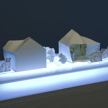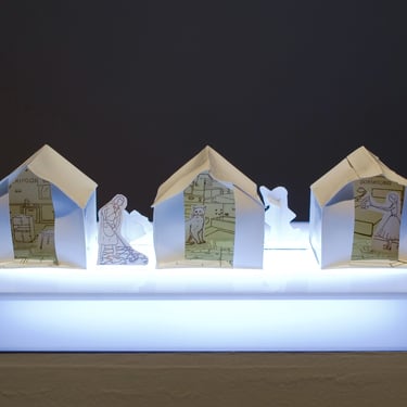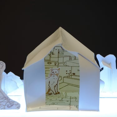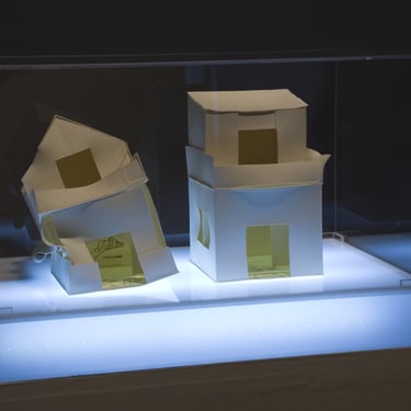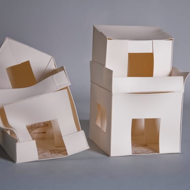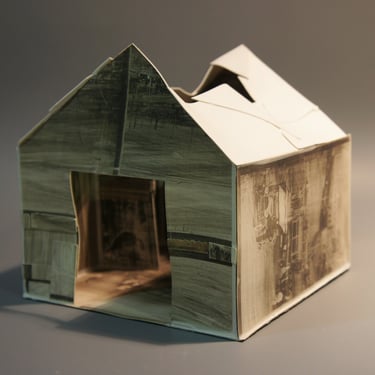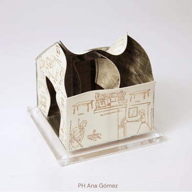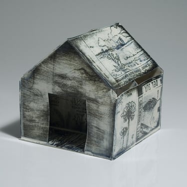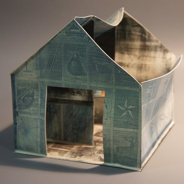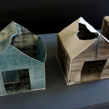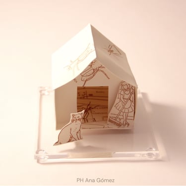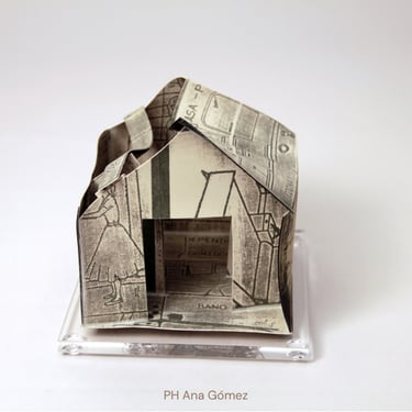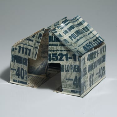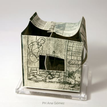 The ironic word "Home" seems almost comical in this context of poverty. The simplicity of the dwelling, constructed from printed cardboard, reveals the sad reality that has marked us for many years. There are houses without roofs, some on the verge of collapse, falling apart, and others barely holding themselves up. It is a series in constant development, and its metaphorical unfolding manifests as a symbol of resistance.